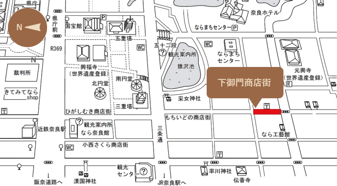 大和は国のまほろば、その大和の国、奈良の県庁所在地、奈良市にある下御門商店街は、古くは近隣商店街と共に奈良時代興福寺の境内に在り、当時の僧坊の名称に由来するといわれ、興福寺、東大寺、春日大社の門前町として自然発生的な"市"として布(奈良晒)や刀、鎧、甲等を扱う店が集積し、江戸中期には現在の商店街の賑わいを形成していた歴史を有する商店街です。